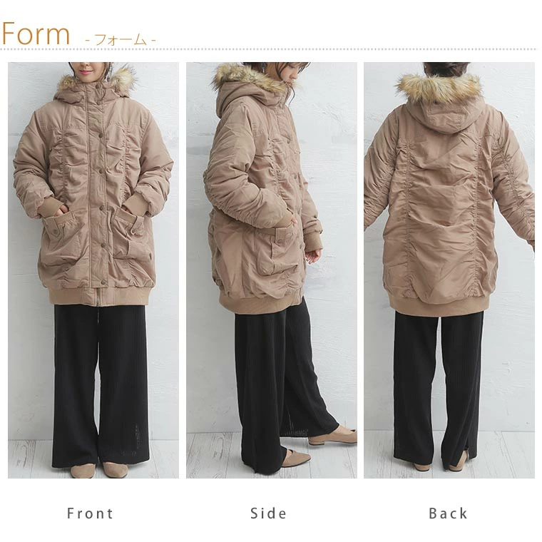 4. 大きいサイズ デザイン変更 サイズ追加 リブ使い 裏ボア 長袖 モッズコート