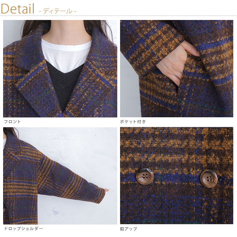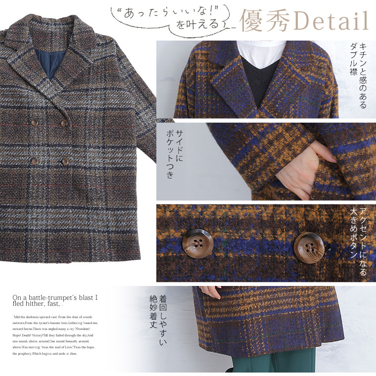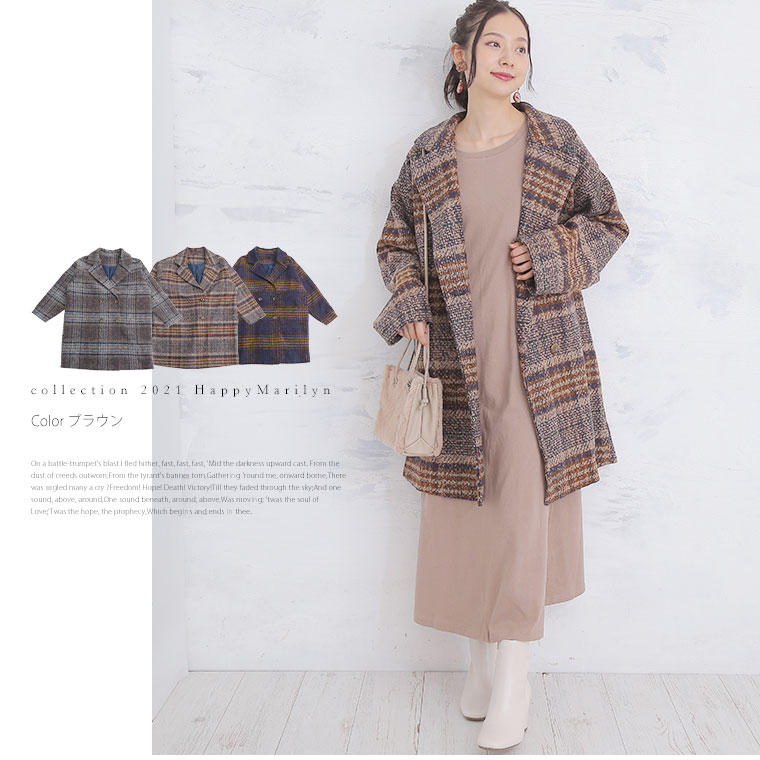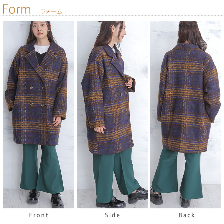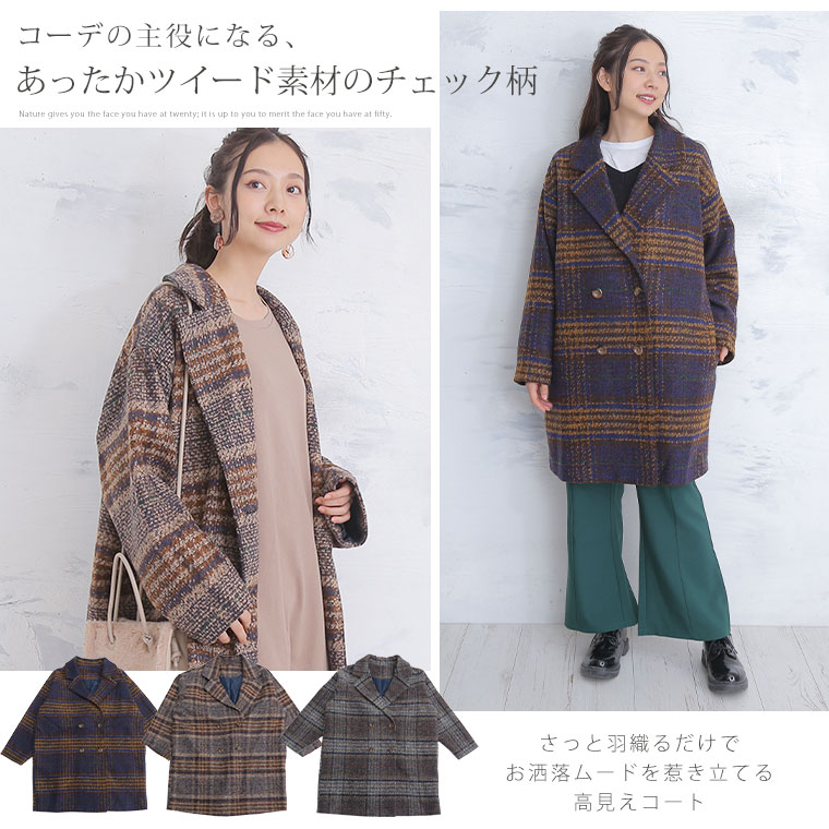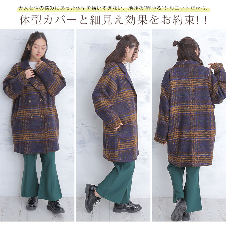 ジャケット LL 3L 4L 冬 冬物 冬服 ぽっちゃり ゆったり かわいい おしゃれ カジュアル プラスサイズ ナチュラル きれいめ 上品 ガーリー オーバーサイズ ダブル ダブルコート ループ ツイード コート