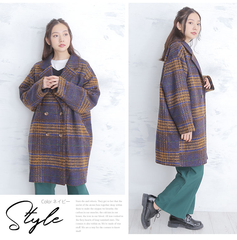 手触りがよく、高級感があります。 最近のオーバーサイズのコートは肩が落ちすぎていて腕の変なところがシワになってしまい、膨張して見えることもあるのですが、このコートは形もしっかりしていて着ても崩れず、体のラインを誤魔化しつつもすっきり見せてくれます。 柄も上品で可愛くて、色々な服に合わせやすそうで、冬に大活躍すると思います。 生地がしっかりしているので少し重めですが、その分とても暖かいです。