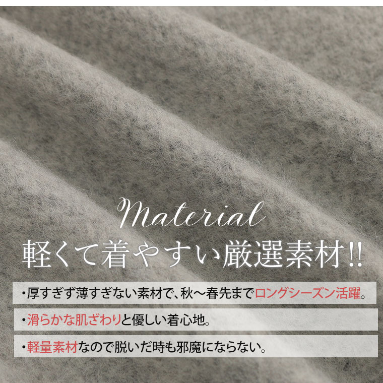 シンプルなデザインでいつものコーデにさっと羽織れる。