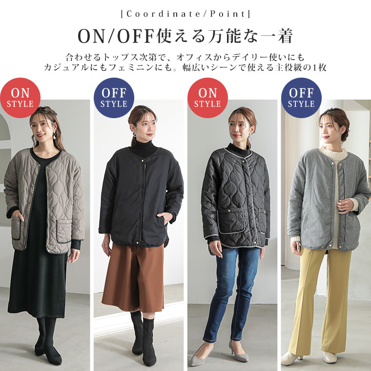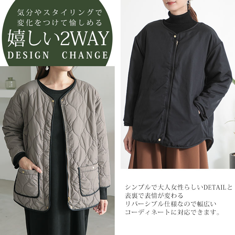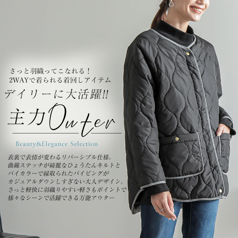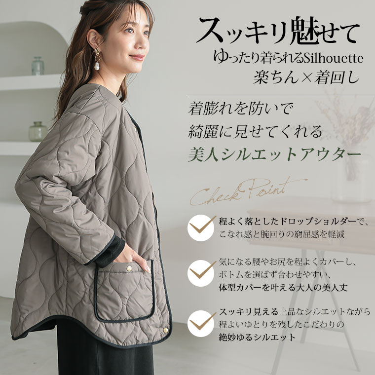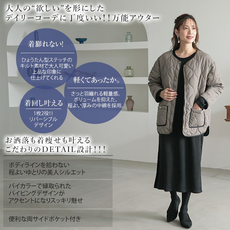 コート LL 3L 4L 冬 冬物 冬服 ぽっちゃり ゆったり プラスサイズ キルティングジャケット リン きれいめ 高見え 上品 ママファッション オフィスカジュアル Rin 細魅せ美人 ひょうたんキルト リバーシブルジャケット