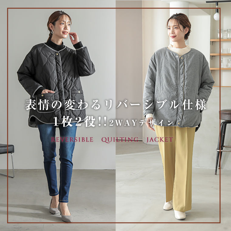 大きいサイズ Rin 細魅せ美人 ひょうたんキルト リバーシブルジャケット