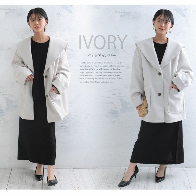 他の画像を見る ジャケット LL 3L 4L 5L 6L 冬 冬物 冬服 ぽっちゃり ゆったり かわいい おしゃれ カジュアル ナチュラル プラスサイズ 長袖 防寒 暖か ニットモッサ ライト セーラーカラー コート | 大きいサイズの通販ならハッピーマリリン 価格 ¥ 7,990 税込 4.47 在庫切れ お気に入りに登録する
