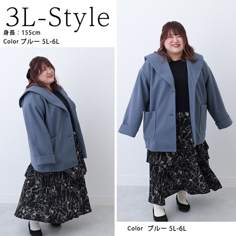 他の画像を見る ブルゾン LL 3L 4L 5L 6L 秋 秋物 秋服 冬 冬物 冬服 ぽっちゃり ゆったり ビッグカラー かわいい おしゃれ カジュアル ナチュラル プラスサイズ ニットモッサ セーラーカラー ミドルジャケット | 大きいサイズの通販ならハッピーマリリン 在庫特価 定価 ¥ 6,990 のところ 価格 ¥ 3,000 税込 4.30 お気に入りに登録する