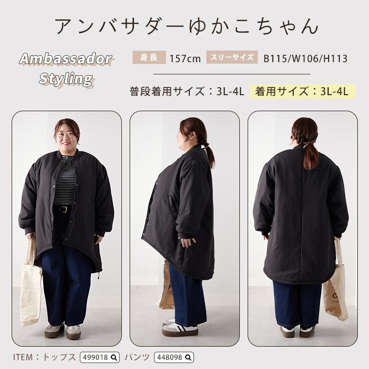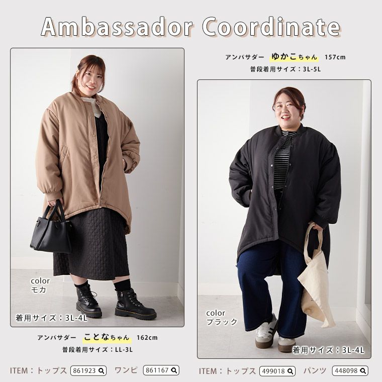 他の画像を見る ブルゾン 3L 4L 5L 6L 冬 冬物 冬服 ぽっちゃり ゆったり 冬アウター 軽い コート 羽織り キルティング プラスサイズ かわいい おしゃれ カジュアル 袖キルト ボアジャケット | 大きいサイズの通販ならハッピーマリリン SALE 定価 ¥ 5,990 のところ 価格 ¥ 4,191 税込 4.00 お気に入りに登録する
