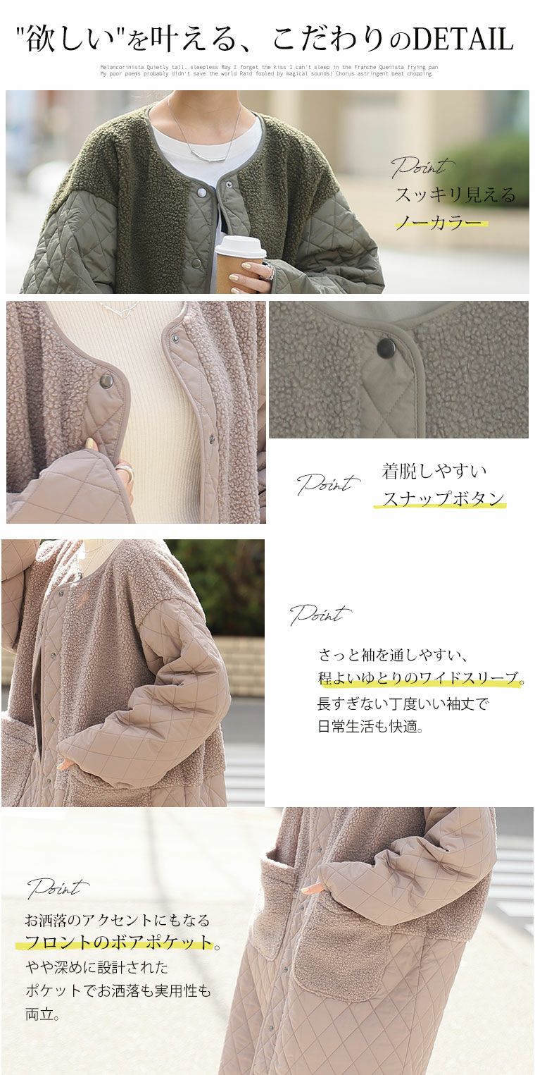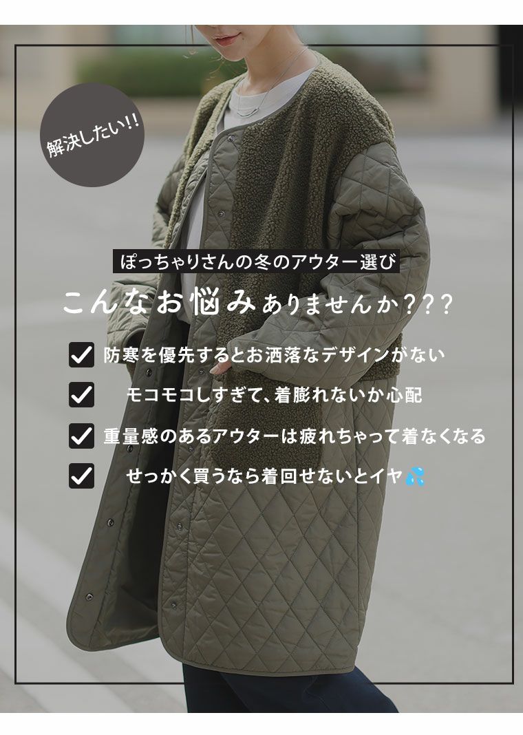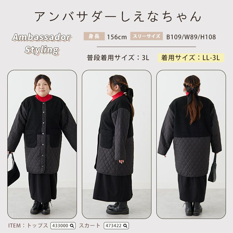 他の画像を見る コート ジャケット LL 3L 4L 長袖 冬 冬物 冬服 ぽっちゃり ゆったり プラスサイズ かわいい おしゃれ カジュアル ナチュラル 軽い! 厚すぎない! 細魅せ切替 ボア切替え ダイヤキルティング コート 軽量 | 大きいサイズの通販ならハッピーマリリン 価格 ¥ 4,990 税込 4.29 お気に入りに登録する