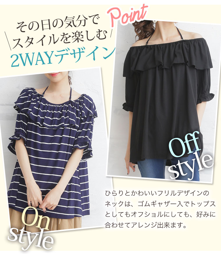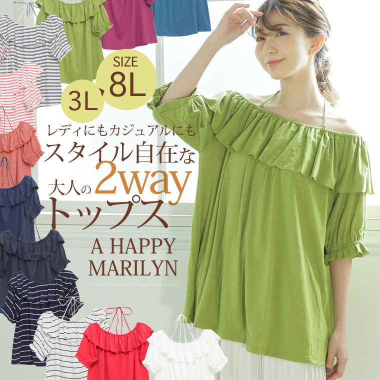 オリジナル カットソー プルオーバー 3L 4L 5L 6L 7L 8L 【オススメ】 2WAY 無地 と ボーダー から 選べる! ホルター シャーリング トップス