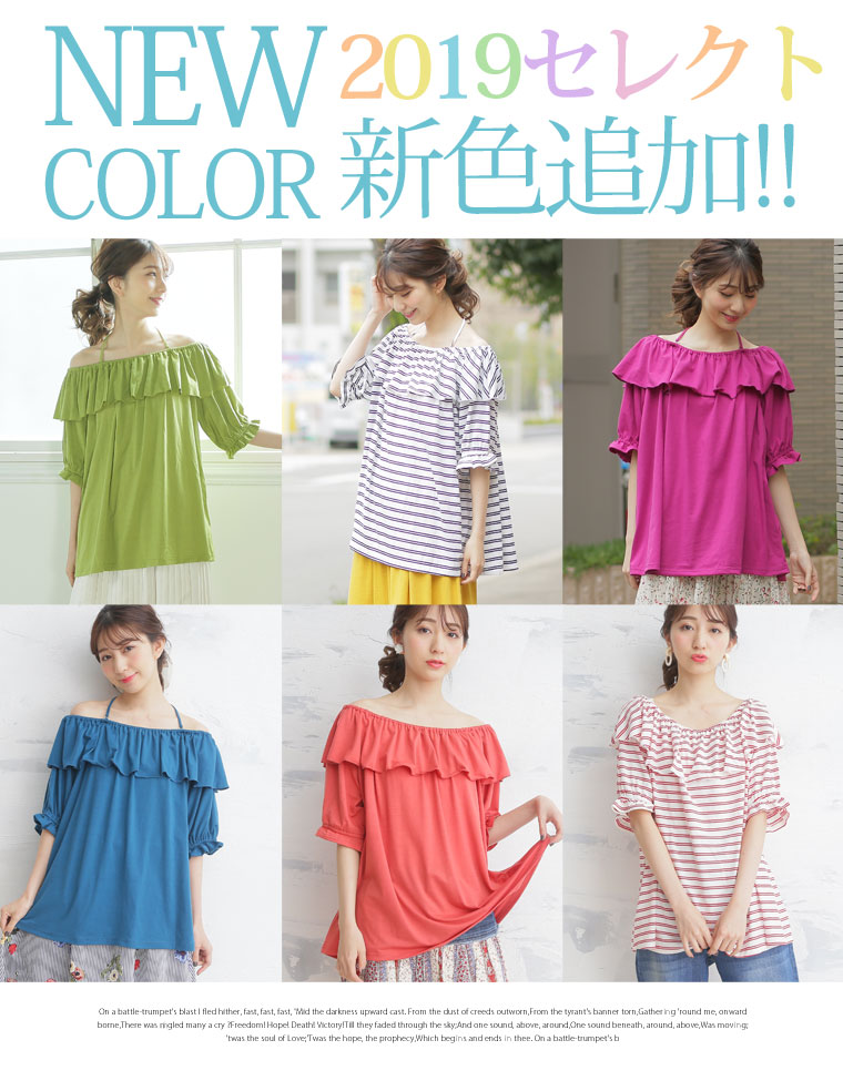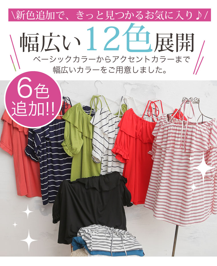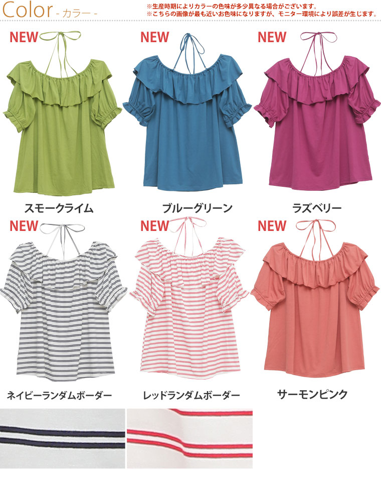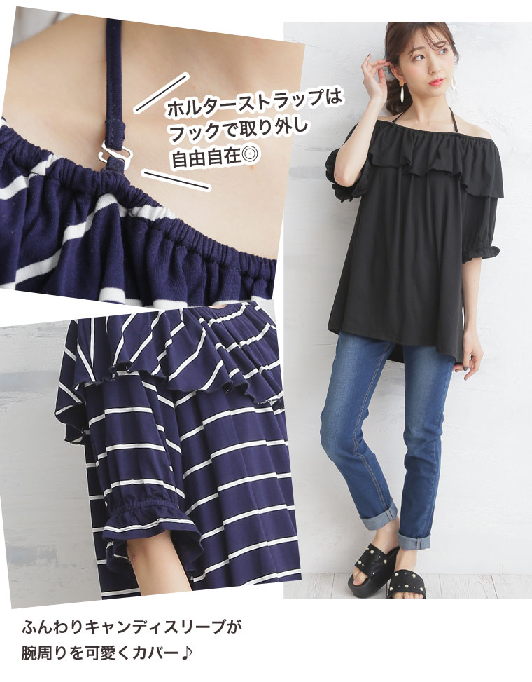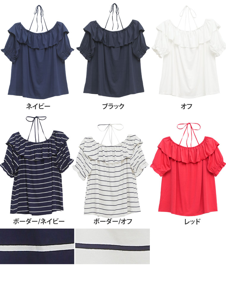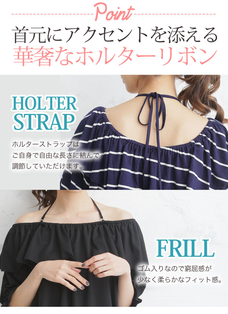 4. 大きいサイズ 【オススメ】 2WAY 無地 と ボーダー から 選べる! ホルター シャーリング トップス