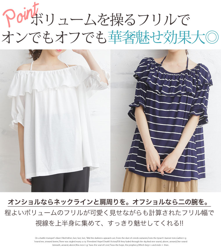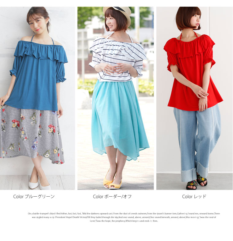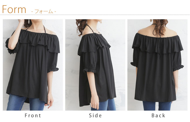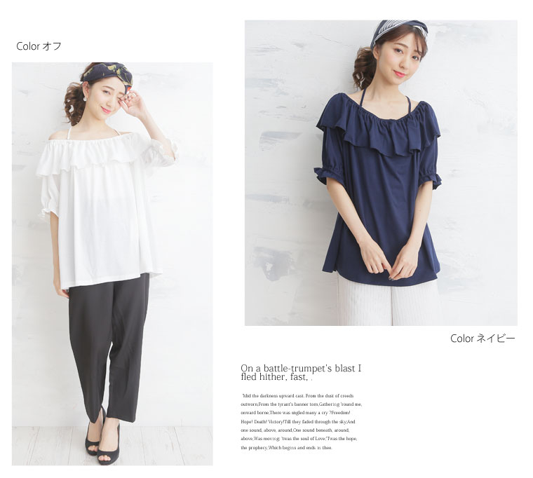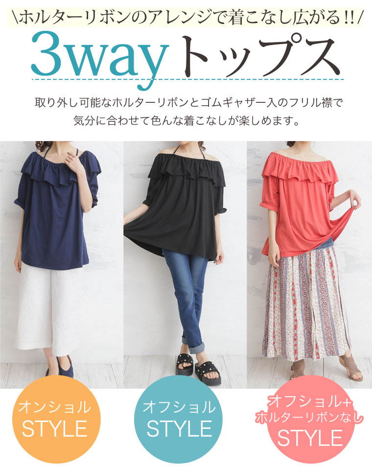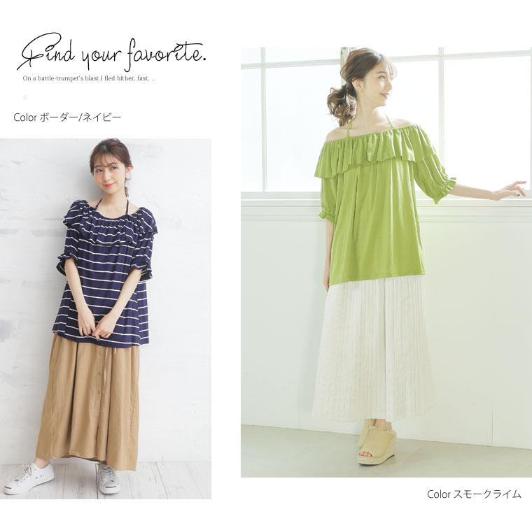 ショルダーのオンオフ、ホルターネック使いで思い通りの着こなしができるトップス