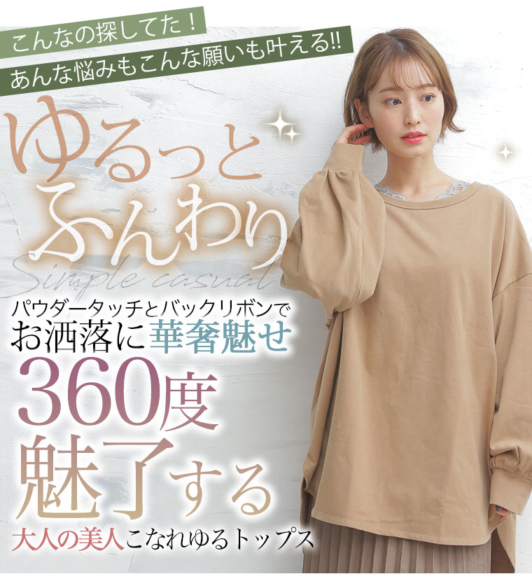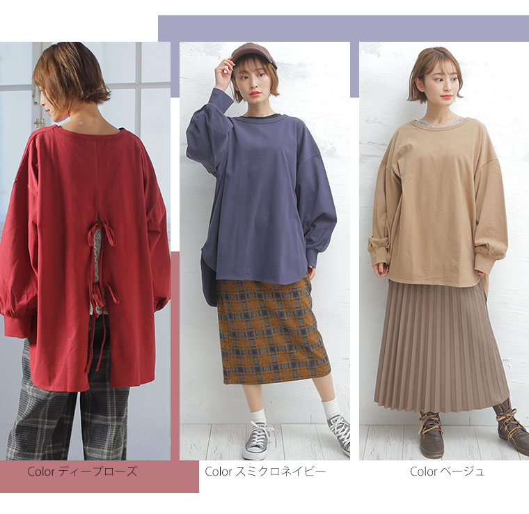 バックリボンがかわいい!ゆるシルエットが今年顔のパウダータッチ綿100%トップス