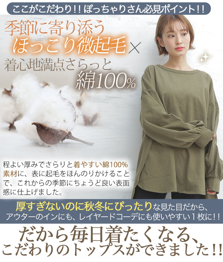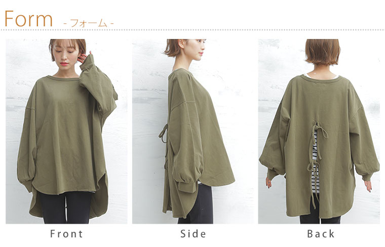 綿100% しっかりコットンパウダータッチ 起毛天竺 バックリボン ゆるトップス