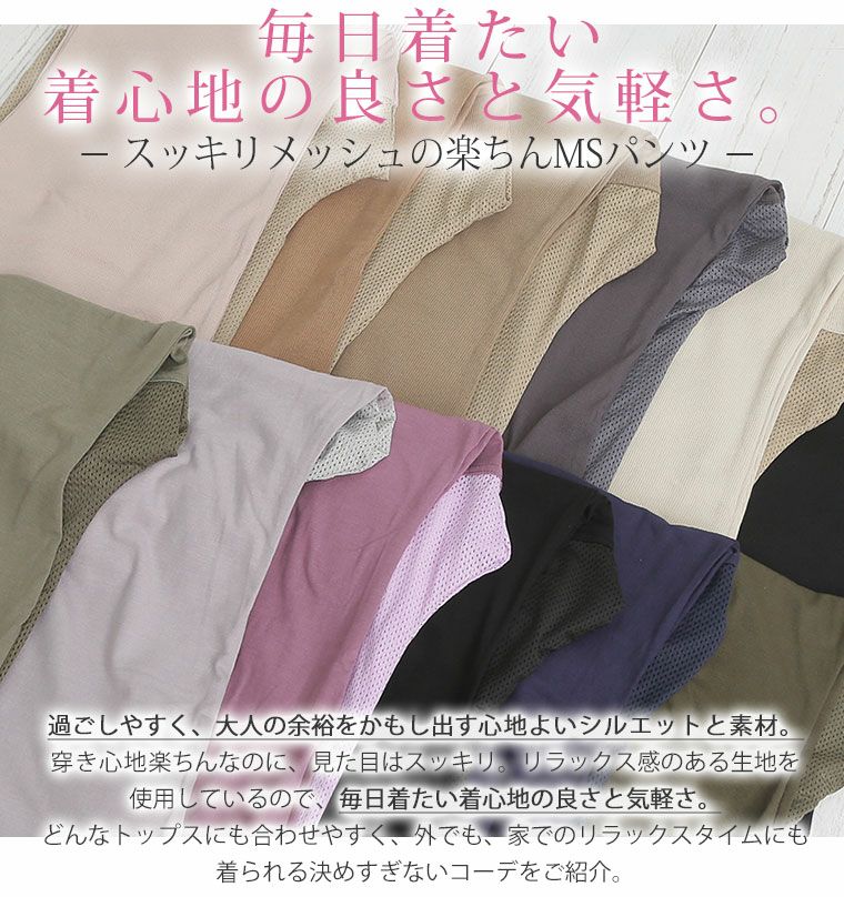 他の画像を見る オリジナル ボトムス LL 3L 4L 5L 6L 7L 8L 秋 秋物 秋冬 ゆったり 【ストレッチ】【ウェストゴム】 暑がりさんのコーデにちょい足し リブ と カットソー で選べるこっそり メッシュ で楽ちん MSパンツ ワイド セミワイド | 大きいサイズの通販ならハッピーマリリン 価格 ¥ 1,490 税込 3.95 在庫切れ お気に入りに登録する