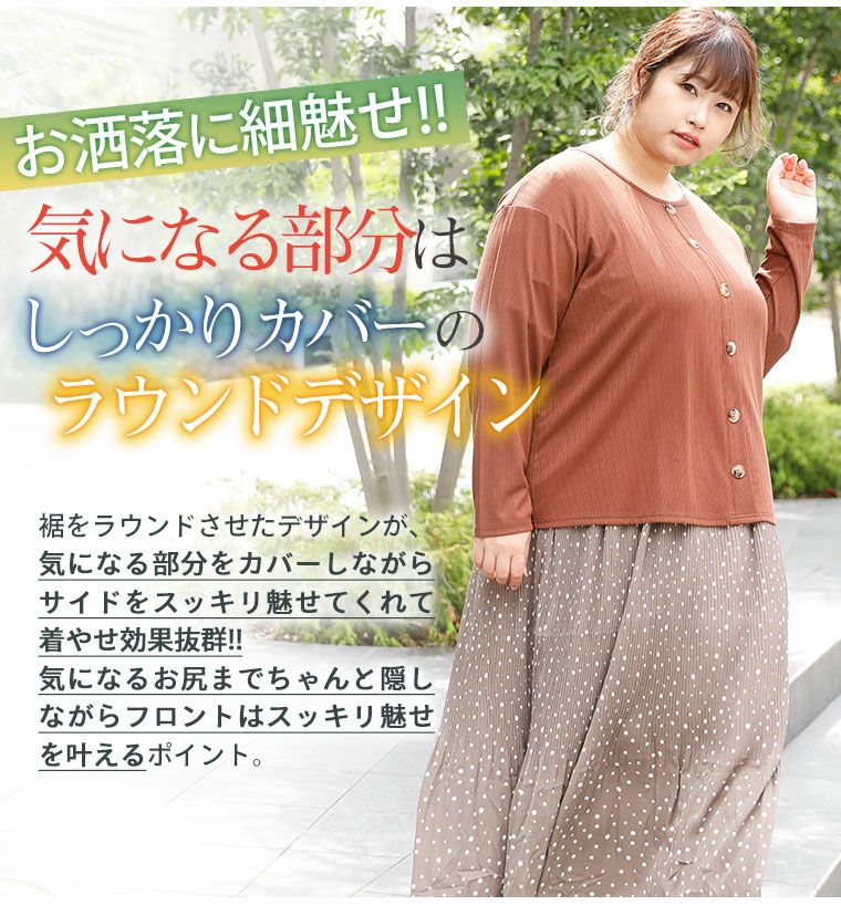 他の画像を見る オリジナル トップス カットソー LL 3L 4L 5L 6L 7L 8L 秋 秋物 秋冬 ぽっちゃり ゆったり お腹 胸周り 二の腕カバー 腰周り 長袖 ゆったりなのに細魅せ! き楽っくす リブボタンデザイン ロンT | 大きいサイズの通販ならハッピーマリリン 価格 ¥ 1,690 税込 4.43 在庫切れ お気に入りに登録する