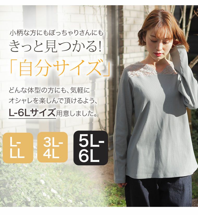 他の画像を見る オリジナル カットソー リブニット LL 3L 4L 5L 6L 春 春物 春服 ぽっちゃり ゆったり レイヤード 重ね着 かわいい おしゃれ カジュアル レースチラ魅せ! リブテレコ Vネック 長袖 プルオーバー | 大きいサイズの通販ならハッピーマリリン 価格 ¥ 2,190 税込 4.33 在庫切れ お気に入りに登録する