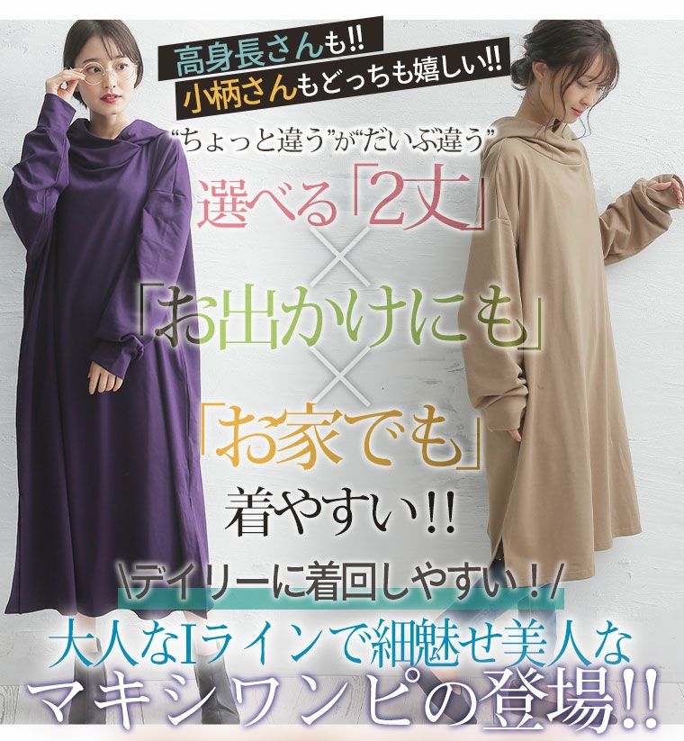 他の画像を見る オリジナル LL 3L 4L 5L 6L 7L 8L 秋 秋物 秋冬 ぽっちゃり ゆったり 選べる身長別!!ゆるっと楽ちん! 指穴つき ゆったりネック の華奢魅せ小顔美人 ミニ裏毛 マキシワンピース | 大きいサイズの通販ならハッピーマリリン 価格 ¥ 2,190 税込 3.93 在庫切れ お気に入りに登録する