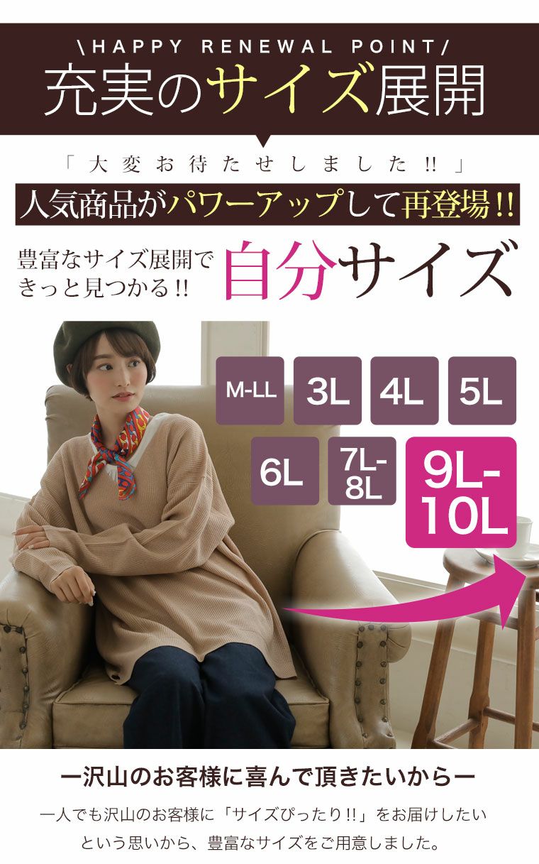 他の画像を見る オリジナル トップス LL 3L 4L 5L 6L 秋 秋物 秋冬 ぽっちゃり ゆったり お腹 胸周り 腰周り お家で洗える! 毛玉防止 ・ 静電気軽減 カシミアタッチ リブ編み 裾 スリット 長袖 チュニック | 大きいサイズの通販ならハッピーマリリン 価格 ¥ 1,721 税込 4.11 在庫切れ お気に入りに登録する