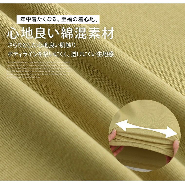 ボディラインを拾いにくく、透けにくい。素肌に安心な優しい肌触りの心地よい綿フライス