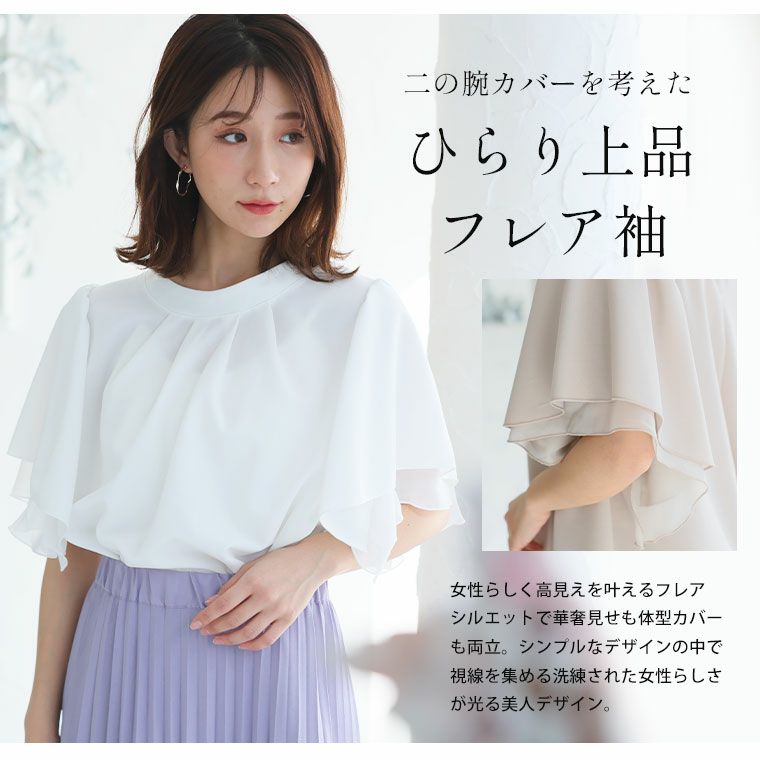 二の腕カバーにオススメ ひらりフレア袖ブラウス
