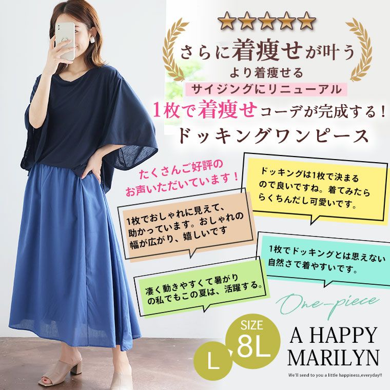他の画像を見る オリジナル ワンピ LL 3L 4L 5L 6L 7L 8L 夏 お腹 胸周り 二の腕カバー 腰周り 半袖 着やせ リニューアル!! 360度完璧シルエット ブラウジングスタイル 優秀 ドッキングワンピース 【着やせアイテム】 | 大きいサイズの通販ならハッピーマリリン 送料無料 小柄さん丈有 価格 ¥ 2,990 税込 3.82 お気に入りに登録する