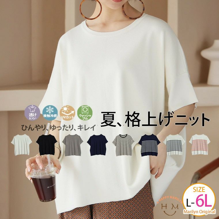 他の画像を見る トップス サマーニット UV LL 3L 4L 5L 6L 半袖 夏 夏物 夏服 夏用 ぽっちゃり ゆったり プラスサイズ かわいい おしゃれ カジュアル ナチュラル uv 接触冷感 マリクールknit ゆったり プルオーバー | 大きいサイズの通販ならハッピーマリリン 送料無料 価格 ¥ 2,490 税込 3.86 お気に入りに登録する