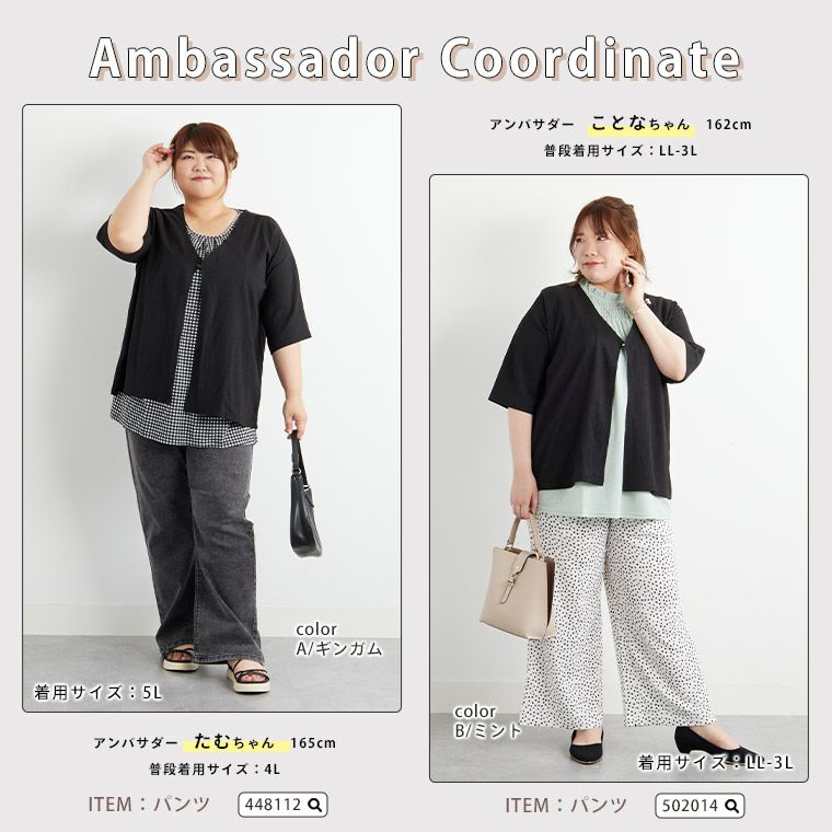 他の画像を見る アンサンブル LL 3L 4L 5L 6L 七分袖 夏 夏物 夏服 夏用 ぽっちゃり ゆったり プラスサイズ お腹 二の腕カバー お尻 腰周り 2typeから選べる! 胸元華やか 時短の神コーデセット | 大きいサイズの通販ならハッピーマリリン 送料無料 価格 ¥ 2,790 税込 4.38 お気に入りに登録する