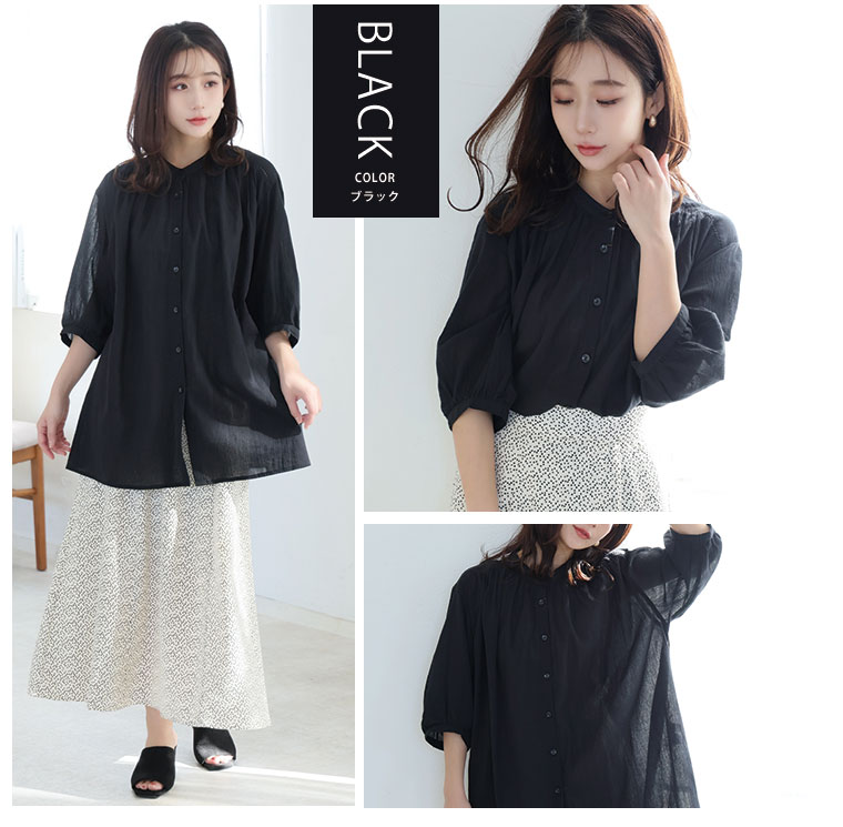 ■着用感:ややゆったり、■着丈:お尻まですっぽり、■バスト:ややゆったり、■腕回り:ややゆったり、■袖口:ちょうどいい、■袖丈:7分、■首回り:ちょうどいい、■ウエスト:-、■ヒップ:-、■太もも:- ●さらさらとした涼やかな生地感でとても快適な着心地です。風通しの良い透け感素材でこの時期に持っておきたい一着です!
