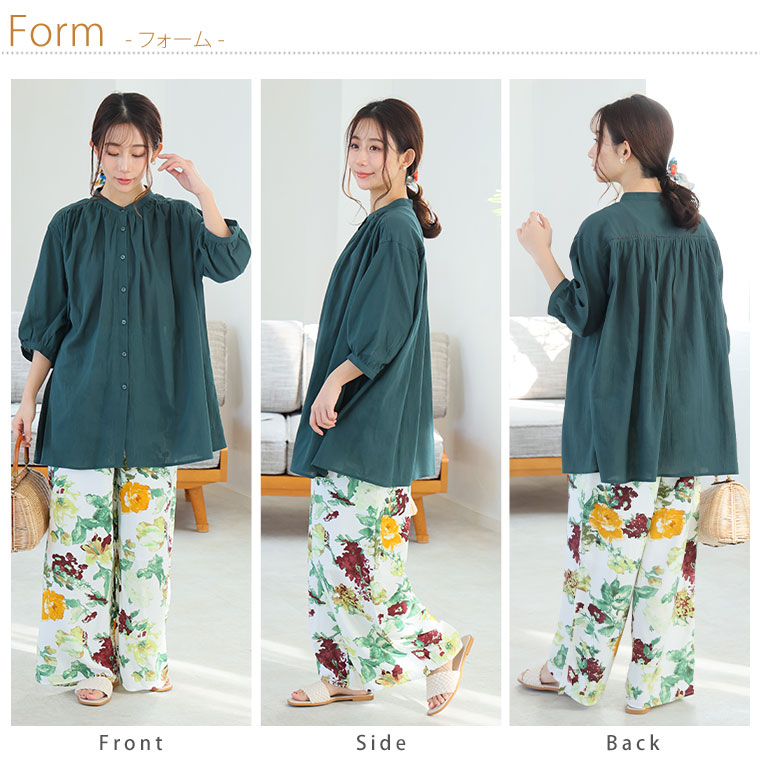 生地は少しゴワつきますが、ゆったりめなので涼しくおしゃれに着られます
