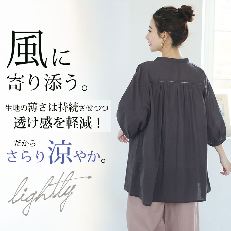 ベーシックなシャツブラウスに、 さりげなくあしらわれたはしごレース。いつもとは違った 着こなしが叶います。