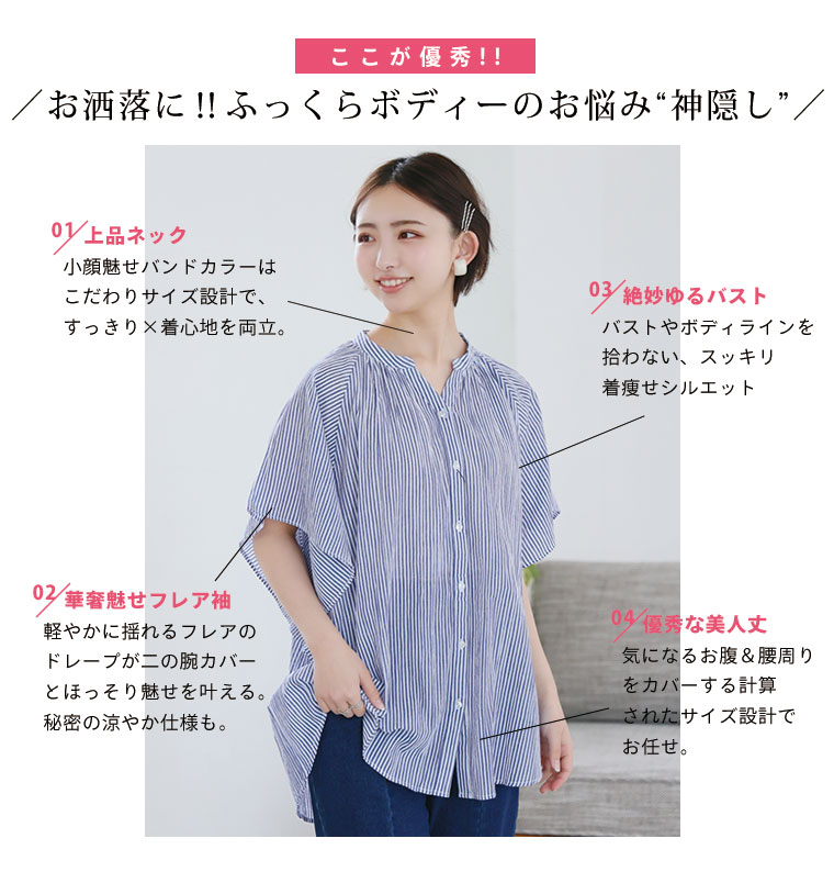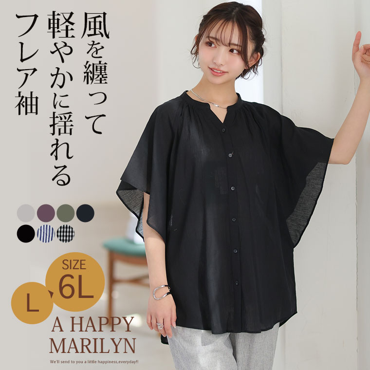 シャツ トップス LL 3L 4L 5L 6L 春 春物 春服 夏 夏物 夏服 ぽっちゃり ゆったり プラスサイズ 二の腕カバー かわいい おしゃれ お腹 腰回り 【風通るプレミアム】 フレアスリーブ ワイド ブラウス