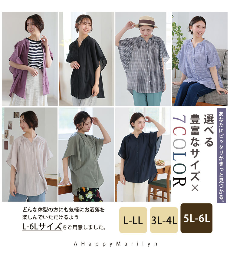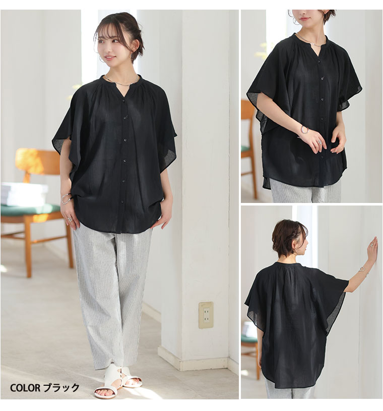 6. 大きいサイズ 【風通るプレミアム】 フレアスリーブ ワイド ブラウス