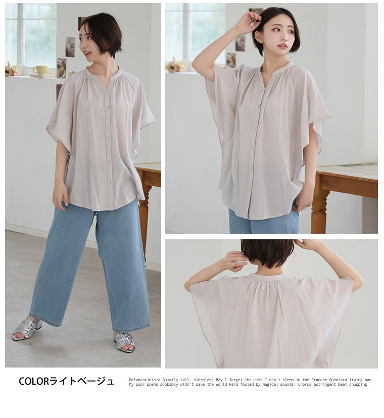 4. 大きいサイズ 【風通るプレミアム】 フレアスリーブ ワイド ブラウス