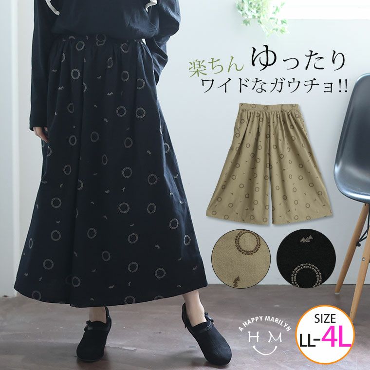 ボトムス スカーチョ LL 3L 4L 秋 秋物 秋服 冬 冬物 冬服 ぽっちゃり ゆったり かわいい おしゃれ カジュアル プラスサイズ ナチュラル ガーリー 【ウェストゴム】 春 綿 ネル タックギャザー スカンツ (花火柄) | 大きいサイズの通販ならハッピーマリリン