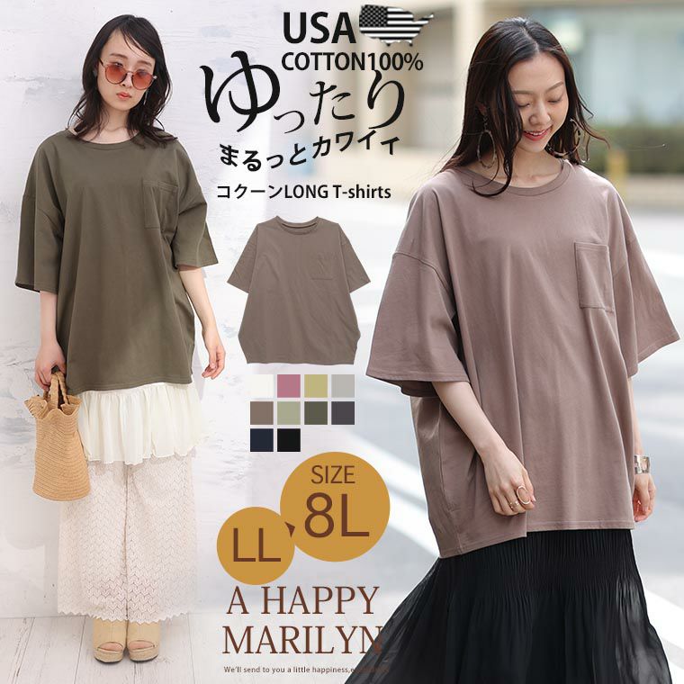 他の画像を見る オリジナル カットソー LL 3L 4L 5L 6L 7L 8L 春 春物 春服 夏 夏物 夏服 ぽっちゃり ゆったり お腹 二の腕カバー 五分袖 綿 かわいい おしゃれ 新色追加!! USAコットン100% BIGシルエット コクーン ロング Tシャツ | 大きいサイズの通販ならハッピーマリリン 価格 ¥ 1,980 税込 3.91 在庫切れ お気に入りに登録する