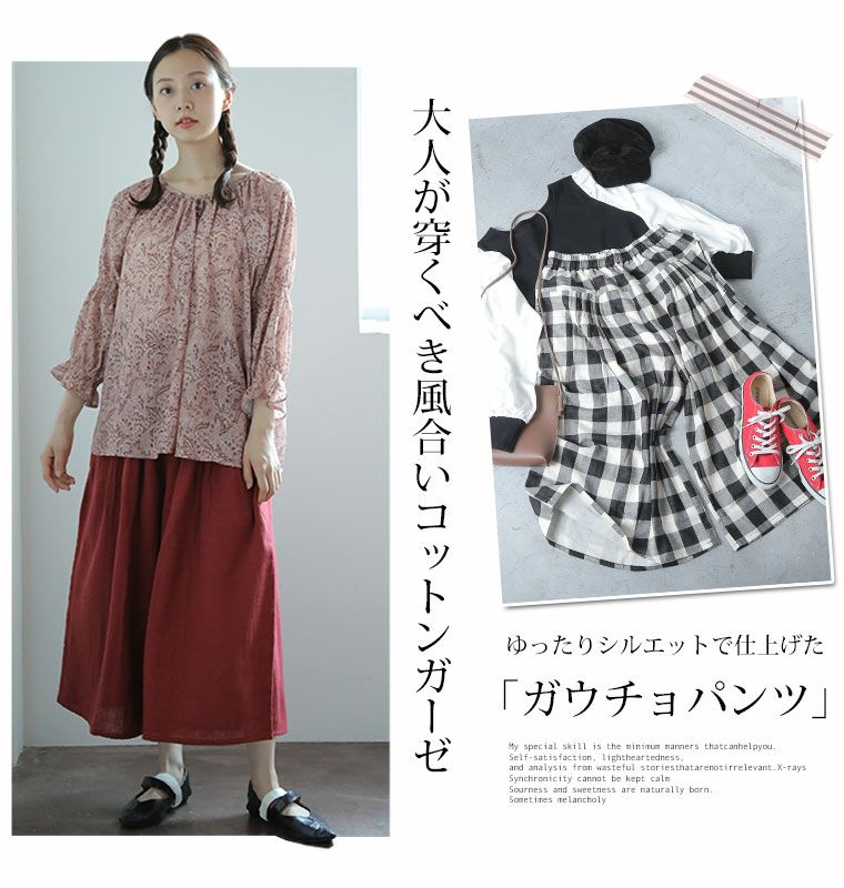 他の画像を見る オリジナル ボトムス ガウチョ スカーチョ スカンツ LL 3L 4L 5L 6L 秋 秋物 秋冬 ぽっちゃり ゆったり 綿100% コットン100% プラスサイズ 【ウェストゴム】 柔らか ダブルガーゼ の ナチュラル ガウチョパンツ | 大きいサイズの通販ならハッピーマリリン 価格 ¥ 2,190 税込 4.60 在庫切れ お気に入りに登録する