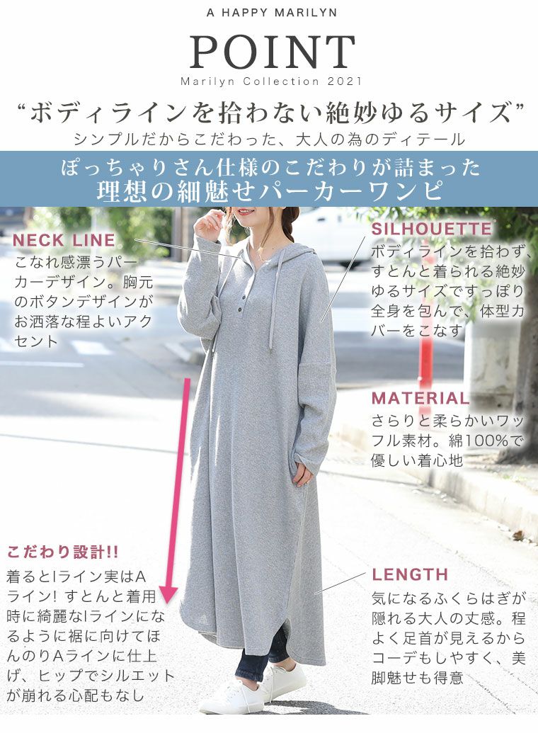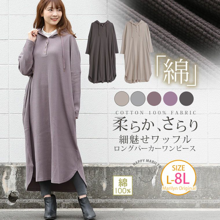 他の画像を見る オリジナル ワンピ デザインワンピ LL 3L 4L 5L 6L 7L 8L 秋 秋物 秋服 冬 冬物 冬服 ぽっちゃり ゆったり 長袖 ぽっちゃりさんに嬉しい! 柔らかさらり すとんと楽ちん ワッフル ロング パーカーワンピース | 大きいサイズの通販ならハッピーマリリン 価格 ¥ 3,190 税込 4.25 在庫切れ お気に入りに登録する