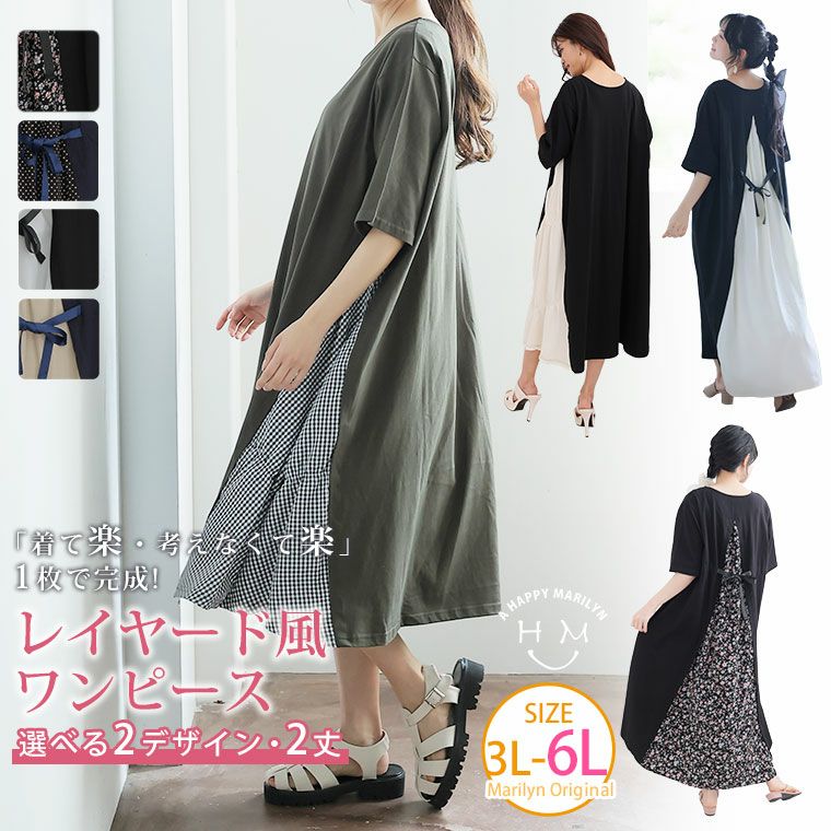 他の画像を見る オリジナル ワンピ LL 3L 4L 5L 6L 夏 夏物 夏服 夏用 お腹 太もも お尻 半袖 新デザイン追加!! 2丈から選べる「着て楽・考えなくて楽」この夏欠かせない レイヤード風 バック切替 ワンピース | 大きいサイズの通販ならハッピーマリリン 小柄さん丈有 在庫特価 定価 ¥ 3,490 のところ 価格 ¥ 2,000 税込 3.60 お気に入りに登録する