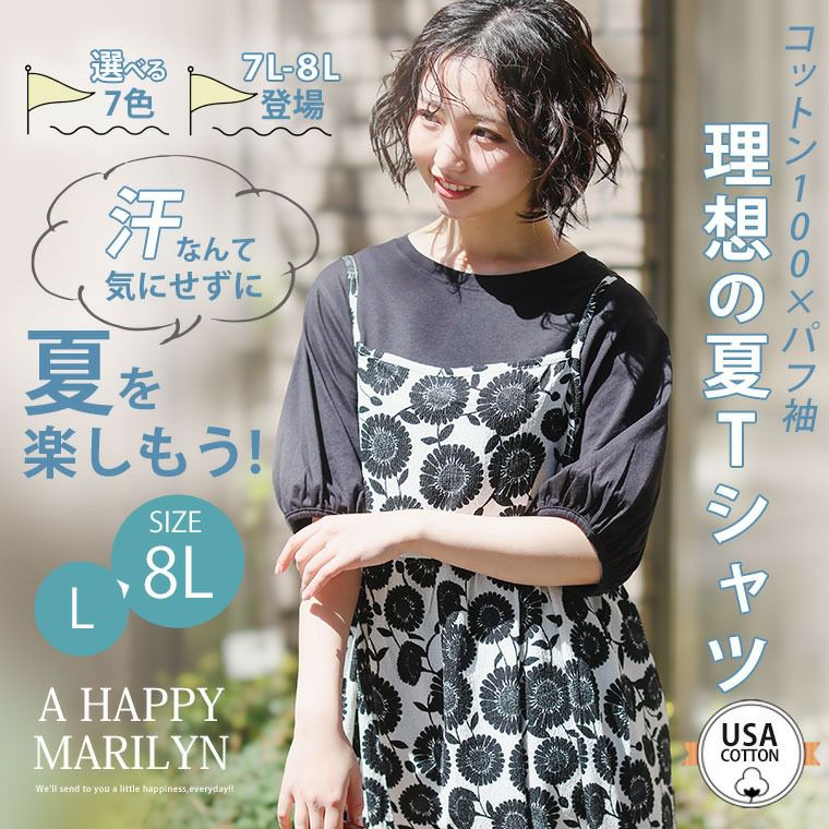 他の画像を見る カットソー LL 3L 4L 5L 6L 7L 8L 半袖 夏 夏物 夏服 夏用 ぽっちゃり ゆったり プラスサイズ かわいい おしゃれ カジュアル パフ袖 COTTON 綿 ガーリー 二の腕カバー USA コットン100% パフ袖 Tシャツ | 大きいサイズの通販ならハッピーマリリン 価格 ¥ 1,980 税込 3.75 お気に入りに登録する