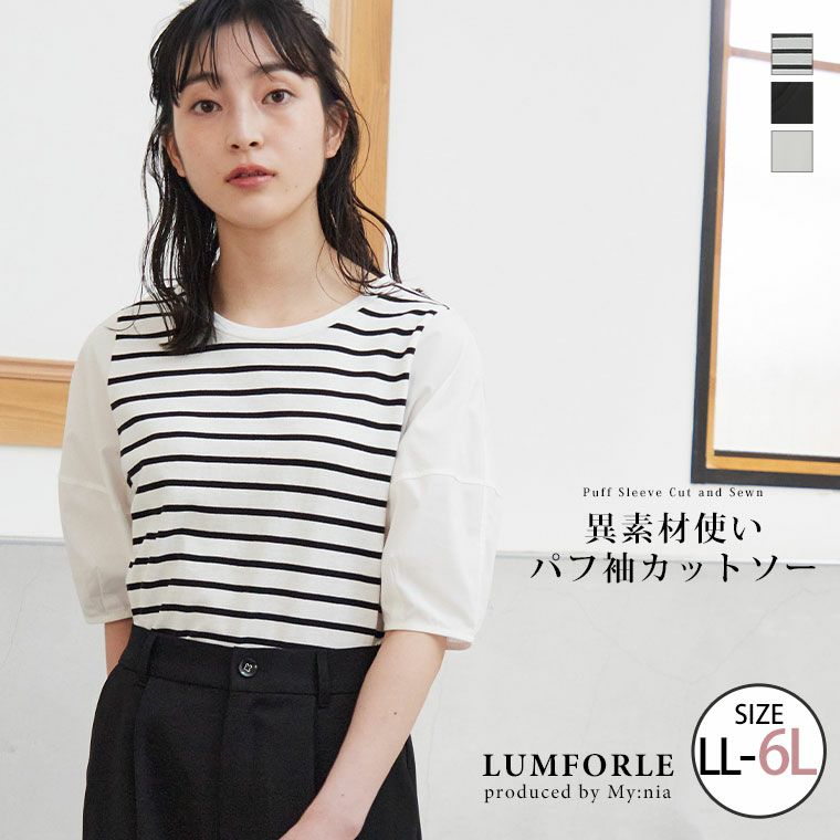 他の画像を見る プルオーバー LL 3L 4L 5L 6L 夏 夏物 夏服 夏用 ぽっちゃり ゆったり カジュアル ナチュラル プラスサイズ 春 【LUMFORLE produced by My:nia】綿100% 異素材使い パフ袖 コットン カットソー 無地 ボーダー | 大きいサイズの通販ならハッピーマリリン 価格 ¥ 3,990 税込 4.25 お気に入りに登録する