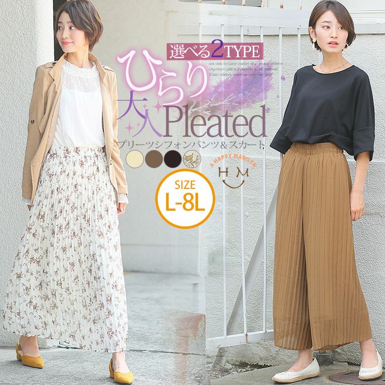 2TYPEから選べる!!繊細なプリーツ加工で大人っぽくシフォンパンツ・スカート