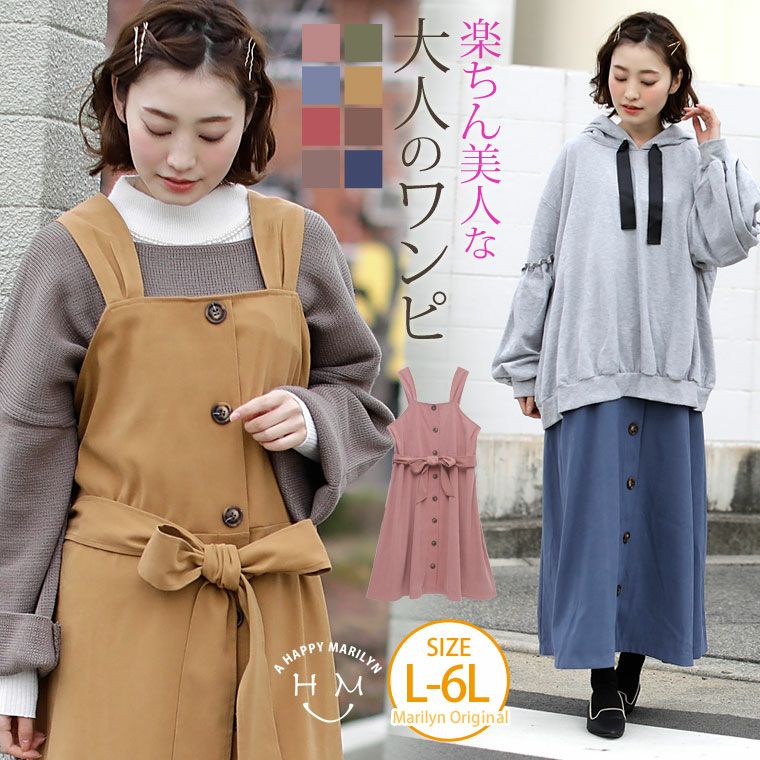 太め肩紐がクラシカルな印象に。ボタンデザインレディロングワンピース