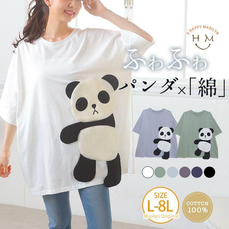 ゆるっとシルエットが可愛い。ボア刺繍のパンダTシャツ