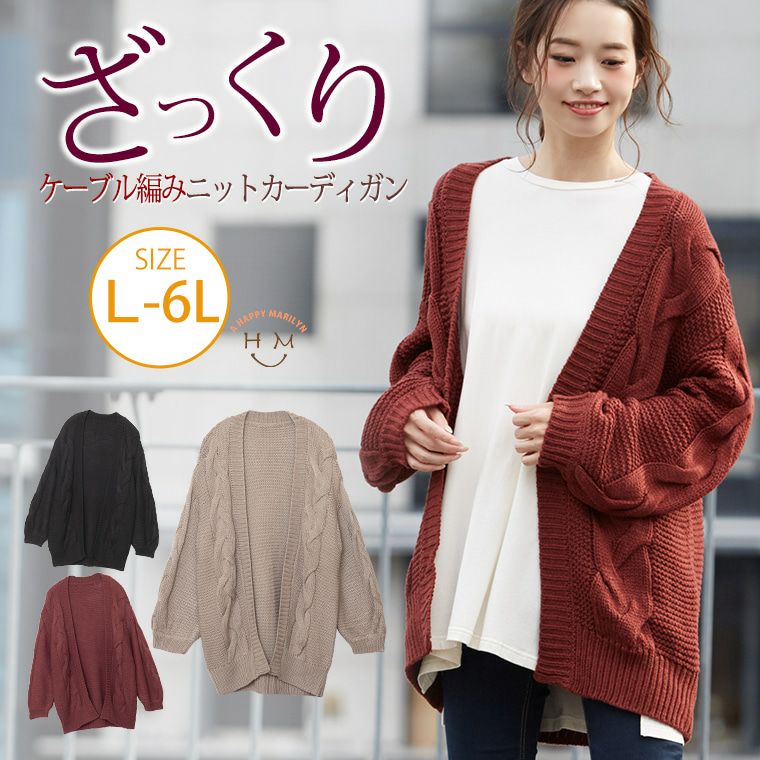羽織るだけでトレンドコーデなざっくり編みケーブル柄ニットカーディガン