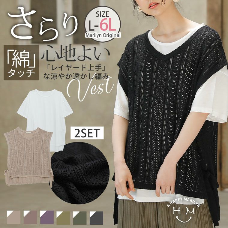 サラリと心地よい 涼しげレイヤードのTshirt&ベストセット