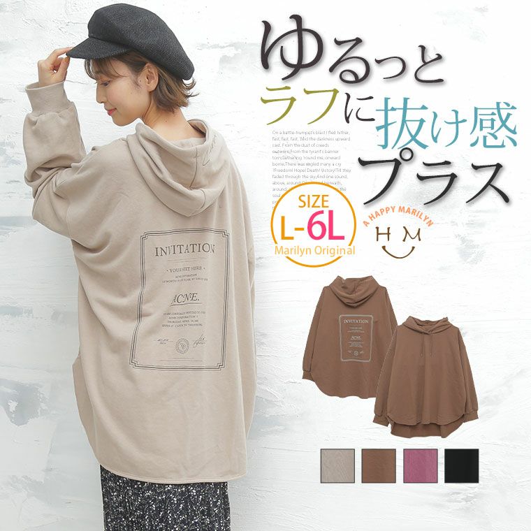 パーカーの刺繍とバックプリントがお洒落!こなれシルエットで華奢魅せ美人