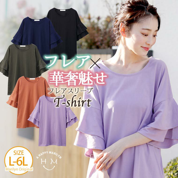 二段フリルのボリュームスリーブがシンプル過ぎない大人のほの甘カジュアル。綿混だから着心地も◎のトップスです