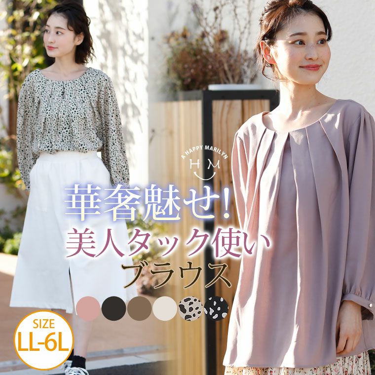 無地と柄から選べる!華奢魅せフロントタックブラウス