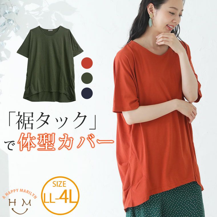 裾タック使いで自然に体型カバー