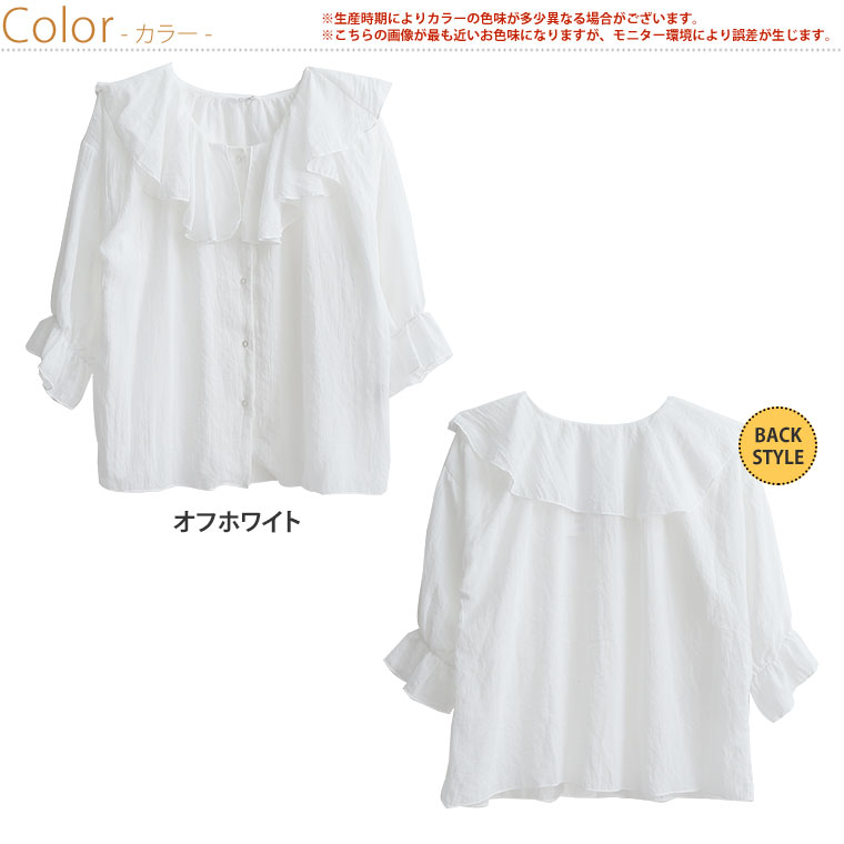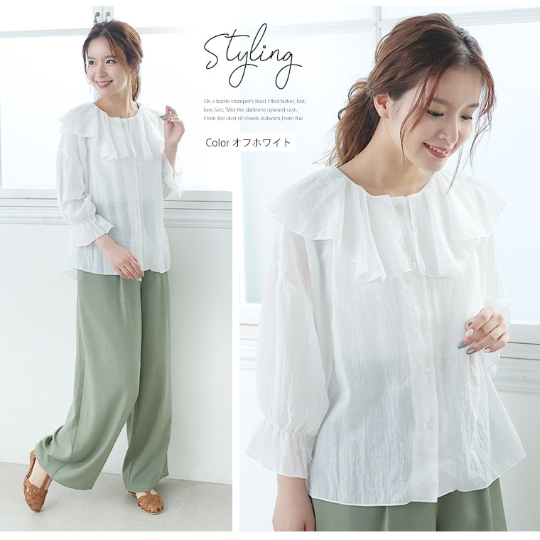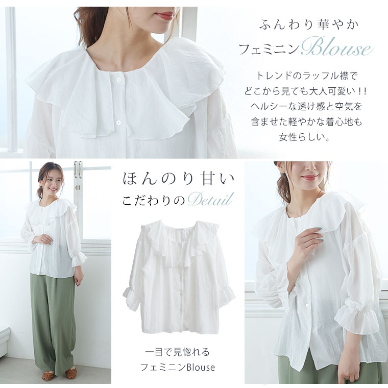 ラッフル襟がかわいいふんわり甘いフェミニンブラウス
