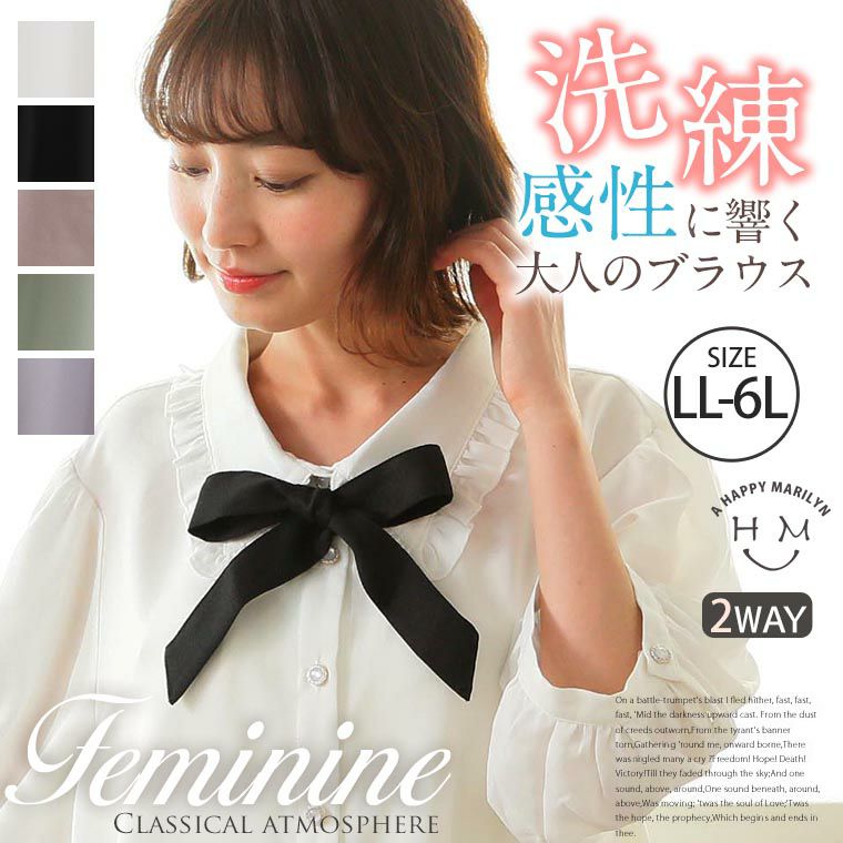 他の画像を見る LL 3L 4L 夏 夏物 夏服 夏用 ゆったり お腹 胸周り 半袖 五分袖 2way上品 華やか! さらっと ジョーゼット リボンタイ付き フリルブラウス | 大きいサイズの通販ならハッピーマリリン 価格 ¥ 2,190 税込 3.50 在庫切れ お気に入りに登録する
