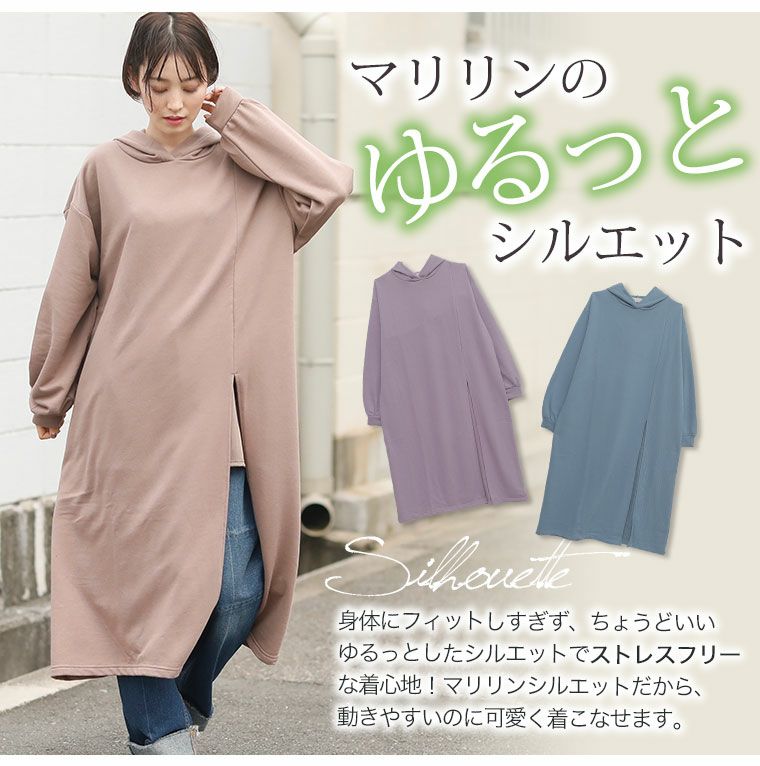 他の画像を見る オリジナル ワンピ デザインワンピ LL 3L 4L 5L 6L 秋 秋物 秋冬 ぽっちゃり ゆったり 長袖 スウェット かわいい おしゃれ カジュアル 【TC裏毛シリーズ】前スリット フード ワンピース | 大きいサイズの通販ならハッピーマリリン 価格 ¥ 2,490 税込 4.14 在庫切れ お気に入りに登録する